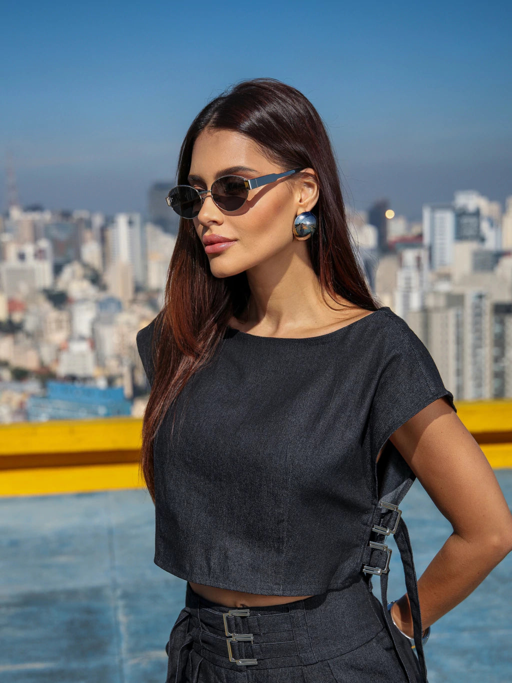 Sua armação em metal resistente traz leveza e conforto, enquanto as lentes oferecem proteção total contra os raios UV, garantindo segurança e um visual refinado.